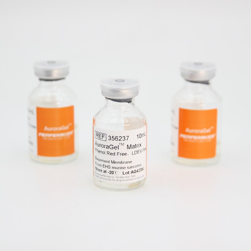 PERFEMIKER? AuroraGel?標(biāo)準(zhǔn)型基質(zhì)膠是一種源自小鼠腫瘤(Engelbreth-Holm-Swarm, EHS)的天然基底膜基質(zhì)膠,其主要成分為層粘連蛋白(Laminin)、IV型膠原(Col-IV)、巢蛋白(Entactin)等細胞外基質(zhì)成分,用于支持細胞生長和分化。該產(chǎn)品不含乳酸脫氫酶增高病毒(Lactate Dehydrogenase Elevating Virus, LDEV)及其他小鼠和腫瘤來源的病原體,確保實驗的安全性。