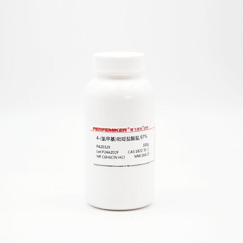 博飛美科的4-(氯甲基)吡啶鹽酸鹽,97%為吡啶,產(chǎn)品穩(wěn)定,定制速度快,極大地方便了廣大科研客戶的使用需求。產(chǎn)品包裝為500g。查詢關(guān)鍵詞:吡啶,1822-51-1,4-(氯甲基)吡啶鹽酸鹽,97%,4-(Chloromethyl)pyridine hydrochloride,博飛美科,Perfemiker,上海,廠家現(xiàn)貨。