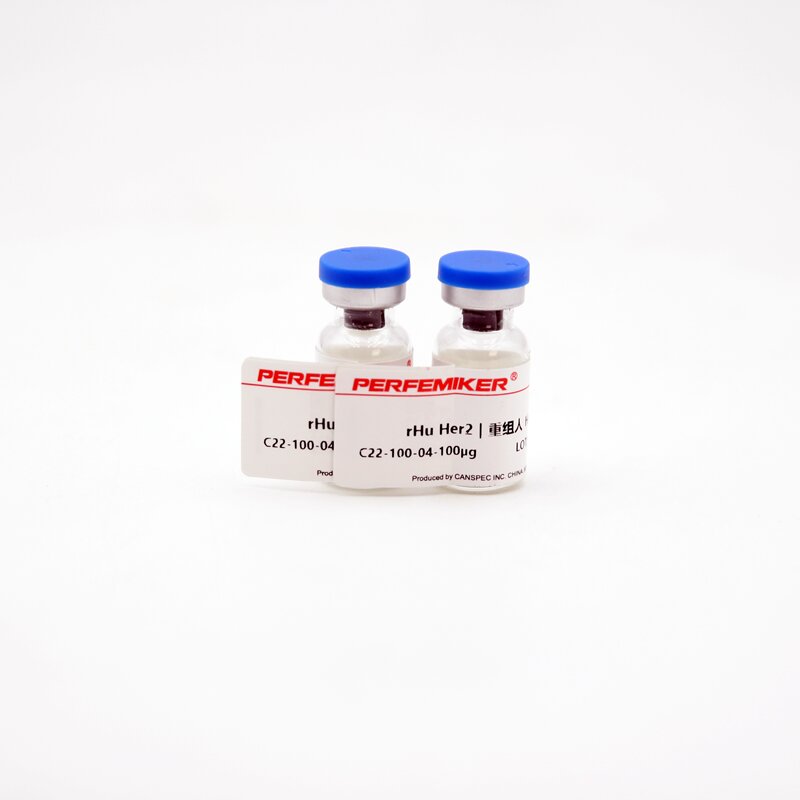 <strong>Gene Name Synonym:</strong><br /> CD340; ENV; ENVW; ERVWE1; HER-2; HER-2/neu; HER2; HERV-7q;HERV-W-ENV; HERV7Q; HERVW; HERVWENV; MLN 19; MLN19; NEU;NGL; TKR1 <strong>純度:</strong>> 90 % as determined by SDS-PAGE<br /> <strong>內(nèi)毒素</strong>:< 1.0 EU per μg of the protein as determined by the LAL method<br /> <strong>表達(dá)宿主</strong>:HEK293 Cells<br /> <strong>種屬:</strong>Human<br /> <strong>預(yù)測 </strong>:N 端Thr 23<br /> <strong>分子量</strong>:The recombinant human ErbB2 comprises 641 amino acids and has a calculated molecular mass of 71 kDa. As a result of glycosylation, rh ErbB2 migrates as an approximately 100-110 kDa protein in SDS-PAGE under reducing conditions.<br /> <strong>生物活性</strong><br /> 1. Measured by its binding ability in a functional ELISA.<br /> Immobilized human Erbb2 at 2.5 μg/ml (100 μl/well) can bind Herceptin with a linear range of 1.28-32 ng/ml.<br /> 2. Measured by its ability to block anti-ErbB2 mediated inhibition of BT474 human breast ductal carcinoma cell proliferation. The ED50 for this effect is 0.2-1 μg/mL in the presence of 0.6 µg/mL Anti-ErbB2/Her2 Monoclonal Antibody.<br /> 3. Using the Octet RED System, the affinity constant (Kd) of Her2 / ERBB2 Protein, Human, Recombinant (His Tag) (Cat: 10004-H08H) bound to Pertuzumab was 0.1 nM.<br /> <strong>蛋白構(gòu)建:</strong><br /> A DNA sequence encoding the extracellular domain (Met 1-Thr 652) of human ErbB2 (NP_004439.2) was fused with the polyhistidine tag at the C-terminus.<br /> <strong>緩沖液:</strong><br /> Lyophilized from sterile PBS, pH 7.4<br /> Please contact us for any concerns or special requirements.<br /> Normally 5 % - 8 % trehalose, mannitol and 0.01% Tween80 are added as protectants before lyophilization.<br /> Please refer to the specific buffer information in the hard copy of CoA.<br /> <strong>運(yùn)輸方式:</strong><br /> In general, recombinant proteins are provided as lyophilized powder which are shipped at ambient temperature.<br /> Bulk packages of recombinant proteins are provided as frozen liquid. They are shipped out with blue ice unless customers require otherwise.<br /> <strong>穩(wěn)定性 & 儲存條件:</strong><br /> Samples are stable for up to twelve months from date of receipt at -20℃ to -80℃<br /> Store it under sterile conditions at -20℃ to -80℃. It is recommended that the protein be aliquoted for optimal storage. Avoid repeated freeze-thaw cycles.<br /> <strong>復(fù)溶:</strong><br /> A hardcopy of COA with reconstitution instruction is sent along with the products. Please refer to it for detailed information.<br /> |